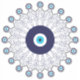Gemusterter Aufkleber mit kreisförmigem Mandala aus traditionellen, türkisblauen, weißen und schützenden bösen Augensymbolen