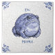 This expressive ceramic tile features a grumpy, oversized toad rendered in classic Delft blue, paired with the bluntly humorous phrase “Ew. People.” The illustration combines bold ink lines with soft watercolor washes, evoking traditional Dutch blue-and-white pottery while embracing modern sarcasm. Set against an antique-style crackle-glaze background with ornamental corner flourishes, the piece balances timeless ceramic aesthetics with witty attitude. Ideal for kitchens, bathrooms, offices, or entryways, this tile makes a perfect gift for introverts, animal lovers, or anyone who appreciates dry humor wrapped in vintage-inspired design.