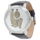Uhr, Vintage Männeruhr mit schwarzem Lederarmband