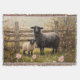 Ein herzliches Gemälde eines sanften Schafes und ihres spielerischen Lammes in einer üppigen Frühlingswiese mit frischer Vegetation und blühenden Wildblumen. Diese reizvolle Landschaft spiegelt die Wärme und Erneuerung des Frühlings auf dem Bauernhof wider.