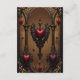 Ewige Liebe im Schatten der gotischen Finsternis. Der verzierte Rahmen, inspiriert durch gotische Architektur, besteht aus zwei majestätischen schwarzen Säulen, die mit zarten goldenen Akzenten geschmückt sind. Diese Säulen bilden eine große, gewölbte Öffnung, die vor einem warmen braunen Hintergrund glänzt und den perfekten Kontrast zu den dunklen Elementen bildet. Die zarten roten Herzen sind teilweise in feinen Spinnweben eingewickelt.