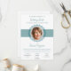 Ehren Sie Ihren Verstorbenen mit dieser eleganten und anpassbaren Vorlage für eine Trauerfeier. Mit einer zeitlosen Farbpalette in Teal und Weiß, einem runden Portraitrahmen und anspruchsvoller Typografie ermöglicht dieses leicht zu bearbeitende Layout die Personalisierung von Details zur Trauerfeier, Daten und herzlichen Tributen. Erstellen Sie ein professionelles, hochwertiges Andenken, das ein schönes Leben würdevoll feiert und Familie und Freunden während der Trauerfeier eine sinnvolle Orientierung bietet.