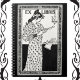 Jugendstil-Buchzeichen einer Dame, die einen Stift zum Schreiben schärft