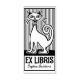 Eine Ex-Libris-Briefmarke mit einem Retro-Bild, das auf einem Tisch vor einer Wand mit gestreiften Tapeten stehend ist. Passen Sie den Namen an, um ihn zu personalisieren.