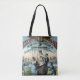 Circa 1885 - Werbung für Ginger Ale mit Ballon und Korb mit schwarzen Begleitern. Zwei Frauen trinken Excelsior Ginger Ale, was impliziert, dass der Kohlenstoff hilft der Ballon zu steigen. Bild von zwei modisch gekleideten Frauen in schlanken, langen Kleider und Knöcheln, die auf einer Heißluftballonfahrt starten, eine steht im Korb und hält ein spitzengeätztes Taschentuch mit einem senfliegenden Ballonfahrer mit Fernglas und einem Monokel, die andere sippt eine Insignatur aus Glas, während sie beginnt, eine Seilleiter in das Handwerk zu steigen; zwei afroamerikanische Männer mit Gale Ein großer Menschenmassen beobachtet das Spektakel hinter einem weißen Holzzaun, der mit Werbeslogans bemalt ist