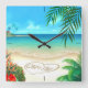 Exotic Beach FRAGTE mir, IHRE NAMEN IN SAND ZEICHN Quadratische Wanduhr