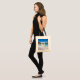 Tote Tasche mit einem Foto mit einem Strand auf der griechischen Insel Kreta. Ein schöner tropisch blauer Strand mit schäumendem Surfen. Wunderschönes ruhiges Reiseziel.