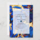 Die Einladung der Engagement-Partei mit einem Dschungelmuster in den Farben Blau, Bordeaux und Gold.