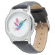 Kinder Edelstahluhr mit schwarzem Lederarmband