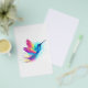 Heller, schillernder, exotischer, fliegender Kolibri auf weißem Hintergrund, übermalt mit mehrfarbiger Aquarellfarbe. Regenbogen-Kolibri.