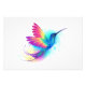 Bright, iridescent, exotic flying hummingbird on white background, painted over with multicolor, watercolor paint. Rainbow hummingbird.