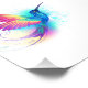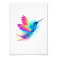 Heller, schillernder, exotischer, fliegender Kolibri auf weißem Hintergrund, übermalt mit mehrfarbiger Aquarellfarbe. Regenbogen-Kolibri.