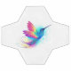 Heller, schillernder, exotischer, fliegender Kolibri auf weißem Hintergrund, übermalt mit mehrfarbiger Aquarellfarbe. Regenbogen-Kolibri.