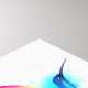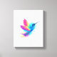 Heller, schillernder, exotischer, fliegender Kolibri auf weißem Hintergrund, übermalt mit mehrfarbiger Aquarellfarbe. Regenbogen-Kolibri.