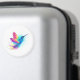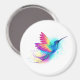 Heller, schillernder, exotischer, fliegender Kolibri auf weißem Hintergrund, übermalt mit mehrfarbiger Aquarellfarbe. Regenbogen-Kolibri.