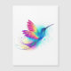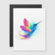 Heller, schillernder, exotischer, fliegender Kolibri auf weißem Hintergrund, übermalt mit mehrfarbiger Aquarellfarbe. Regenbogen-Kolibri.