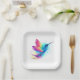 Heller, schillernder, exotischer, fliegender Kolibri auf weißem Hintergrund, übermalt mit mehrfarbiger Aquarellfarbe. Regenbogen-Kolibri.