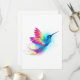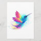 Heller, schillernder, exotischer, fliegender Kolibri auf weißem Hintergrund, übermalt mit mehrfarbiger Aquarellfarbe. Regenbogen-Kolibri.