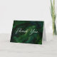 Carte de remerciements avec un motif avec de grands feuilles verts dans une forêt tropicale.