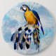 Blauer Papageienvogelfedern auf einem weichen Blues Federhintergrund