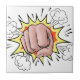 Eine Popkunst-Cartoon-Fausthand mit einer Comicbuchabbruchs-Explosionsgraphik