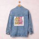 Ce design visuellement frappant et inspirant présente le texte "Just Travel More". Le mot est divisé en deux, avec le côté gauche dans le jaune chaud et ensoleillé et le côté droit dans le rose doux et ludique. La typographie, d'inspiration vintage et affligée, aux contours rugueux et irréguliers, ajoute une touche artisanale et artistique. Évoquant la nostalgie, le design encourage à embrasser son enfant intérieur et sa jouabilité tout en inspirant le voyage. Photo ici sur bleu clair 🔵 Veste Denim, avec d'autres styles de Veste disponibles