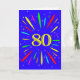 Eine explosive 80. Geburtstagskarte! Was für eine wunderbare Art, Geburtstagsgrüße zu schicken. Die Zahl 80 in hellgelb mit einer Explosion von hellen Farben und Sternen.