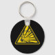 Schwarzer Schlüsselanhänger mit einem schwarzen und gelben Sprengzeichen.