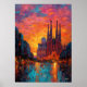 Expressionist Barcelona Skyline Vibrant Cityscape Poster
