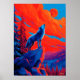 Expressionist Wolf Under Crimson Moon Wall Art Poster