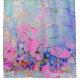 Expressive embossed paint on canvas, created using palette knife technique of oil painting. Primary colors: purple, white, turquoise, blue, pink, violet.