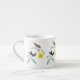 Gravure brillamment colorée de deux colibris faisant face vis-à-vis des directions sur un brin de Ludwigia, parfois un plante de parasite de nos jours dans les marais, pourtant faisant une belle conception qui couvre cette tasse de café express tout à fait bien.