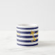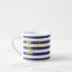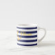 Les rayures chics nautiques de bleu marine et de blanc de caractéristiques de tasse de café express complétées avec de l'or ancrent et ont personnalisé avec votre nom des deux côtés.