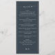 This elegant wedding menu design exudes sophistication with its dark, rich color palette and refined typography. The layout is clean and modern, featuring a mix of cursive and serif fonts that add an air of timeless charm. Perfect for a formal celebration, the mood is both romantic and luxurious, inviting guests to savor each course in an atmosphere of understated elegance. Customizable text areas allow for personalization, making it ideal for couples looking to create a memorable dining experience on their special day.