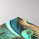 A beautifully detailed digital artwork features a stylized peacock amidst swirling patterns. The vibrant turquoise and gold hues create a mesmerizing texture.