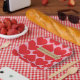Extravagant romantisches Rot-Rot-Rosa-Herz-Muster Pappteller