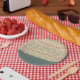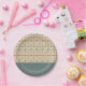 Mit cremig beige, verblasster Blues und weichen Pinks.
