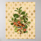 Der hübsche, ästhetische Wandkunstdruck zeichnet sich durch eine Vintage botanische Abbildung von Pilzen, Blume und einer Vielfalt von Blätter auf einem cremigen pfirsichfarbenen und goldenen Harlequin-Hintergrund aus.