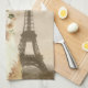 Für Katzenliebhaber bietet das Küchentuch ein Vintages Foto mit Sepia im Hintergrund des Eiffelturms mit einem Overlay von extravaganter Katze mit Blumenkrone.