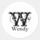 Extravagante Monogramm: Wendy Runder Aufkleber