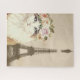 Vintages sepia-farbenes Foto im Hintergrund des Eiffelturms mit Overlay von wunderschöner Aquarellkatze extravagant mit Blumenkronen
