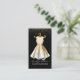 Hübsche Schneider Visitenkarte in schwarz, mit Grafik eines Elfenbeincocktail / Vorkleid und Gold Glitzer Look Akzente. Personalisieren Sie den Text nach Ihren geschäftlichen Anforderungen. Eine schöne Karte für jeden Kleiderschneider.