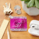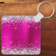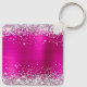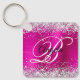 Eleganter silberner Glitzer mit Glitzern gegen ein Imitat magenta heiß rosa gebürstete Metal-Folie Grafik. Das extravagante extravagante Kalligraphie-Monogramm in Schwarz/Weiß in der Mitte kann individuell angepasst werden. Alle funkelnd und glänzenden Elemente in diesem modernen mädchenhaften Design sind digitale Grafiken. Mit Monogramm wertvolle Schlüsselketten-Gastgeschenke für ihre besondere Geburtstagsfeier.