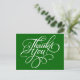 Extravagantes handgeschriebenes Drehbuch Dankeschön Postkarten in Christmas Green. Ideal für Hochzeiten, Geburtstage, Weihnachten, Duschen oder andere Gelegenheiten. Weihnachts-Grün Farbe 'Danke' Postkarten, wenn nötig, wählen Sie eine andere Farbe oder fügen Sie Ihren eigenen gedruckten Text, Adresse oder Firmennamen aus dem Reiter "Anpassen Sie es".