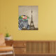 Vintages sepia tint Hintergrund Foto des Eiffelturms mit einem schönen Aquarellbild mit Blumenkronen