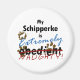 Mein Schipperke ist extrem schwach! Gehorsam wird gestrichen und unartig geschrieben. Funny Schipperke Geschenke, dass Hundeliebhaber unglaublich witzig finden werden! Das Design umfasst auch Spritzer aus Schlamm (mit einer Silhouette im Inneren), Pfotendrucke und Beißspuren aus dem Wort Gehorsam.