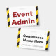 Dieses auffallende Abzeichen-Design enthält die Meldung "Event Admin". Es weist auch gelbe und schwarze Farbstreifen auf. Auf der Rückseite befinden sich ein benutzerdefinierbarer Ereignisname und Ereignisdatum. [~Z0000286]