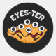Eyes ter Funny Oyster Pun Dark BG Runder Aufkleber