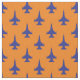 Royal Blue F-16 Viper (der Fighting Falcon) Kampfflugzeuge fliegen in Formation über diesen orangefarbenen Stoff, der für alle Ihre Handwerksprojekte von Anzug-Taschen bis zu Party-Shirts und darüber hinaus hervorragend geeignet ist! **Ändern Sie die Hintergrundfarbe von Orange in eine beliebige Farbe Ihrer Wahl mit der Schaltfläche "Anpassen!"!**