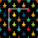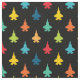 Ein klassisches, primäres F-35-Muster auf schwarzem Stoff ist eine niedliche und unterhaltsame Möglichkeit, Kampfflugzeuge in jedes Handwerksprojekt für Ihre Kleinen einzubinden.